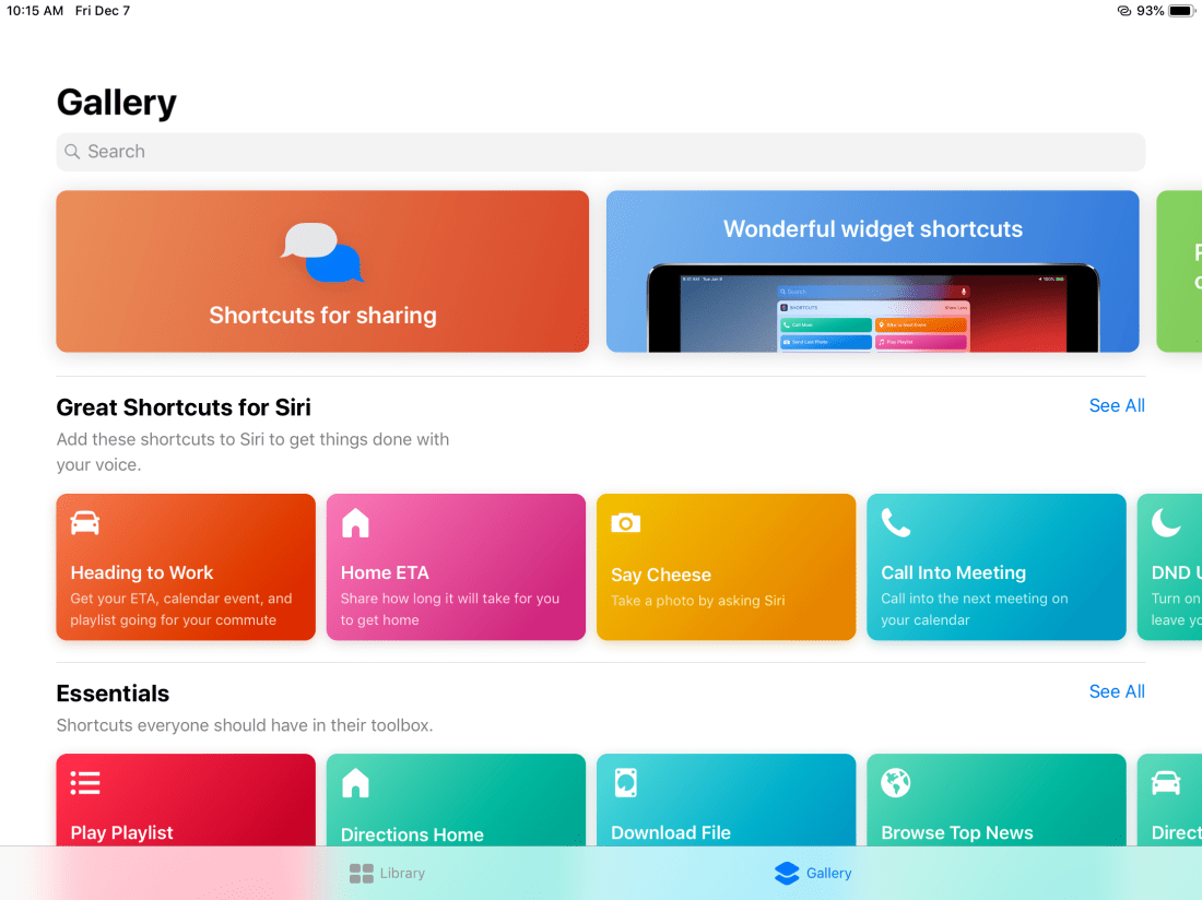 There are loads of useful and cool shortcuts available. One quick way to get them is by navigating or searching the “Gallery” side of the Shortcuts app provided by Apple. Examples of shortcuts available are; Opening playlists, providing ETA (if Apple Maps is supported in your country), browsing top news, creating a photo grid, and speak the body of a web article!