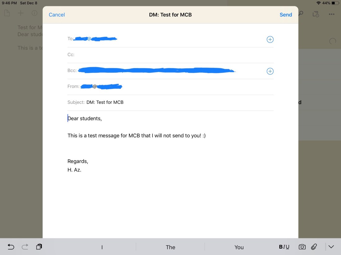 One demonstrative action I use repetitively is to email my students. The default (boring!) way to do that is through a university portal requiring multiple steps to reach the list of students and then write the email within a given box. One could also save students’ emails and then paste them into the “To” area (or “Bcc” as I prefer) of the Mail app.
