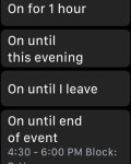 Other times, you would rather mute all communications! When a meeting is approaching, you swipe up the Control Center from the bottom of the screen and select Do Not Disturb. You could then either keep it on, or set it to switch off after an hour, when you leave this location, or by the end of the meeting (an appointment shows up in the menu when it is about 15 minutes away).